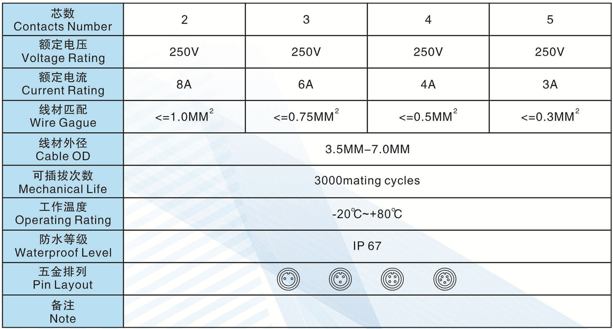 線材匹配(Wire Gague):<=1.0MM2 <=0.75MM2 <=0.5MM2 <=0.3MM2