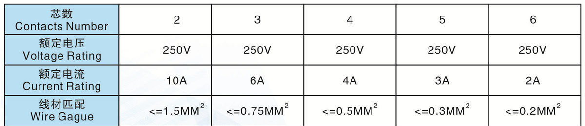 線材匹配(Wire  Gague):<=1.5MM2       <=0.75MM2       <=0.5MM2      <=0.3MM2     <=0.2MM2