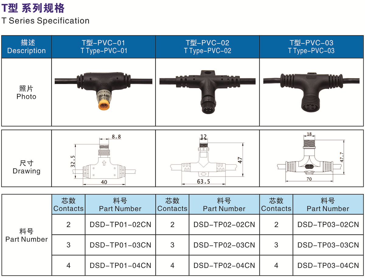 料號(hào)(Part Number) : 2芯(DSD-TP02-02CN) 3芯(DSD-TP02-03CN) 4芯(DSD-TP02-04CN)