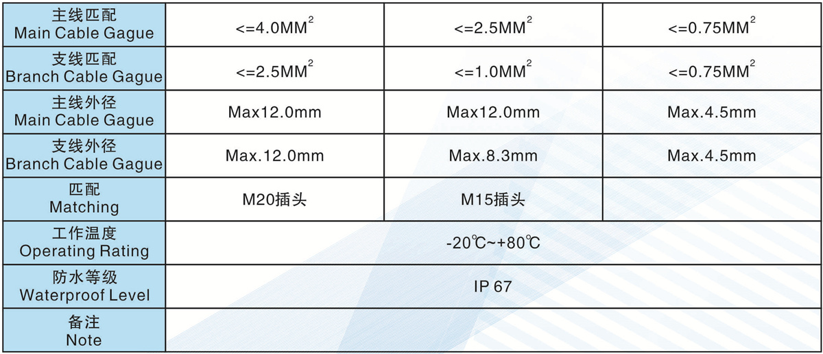 支線匹配(Branch Cable Gague):<=1.5MM2