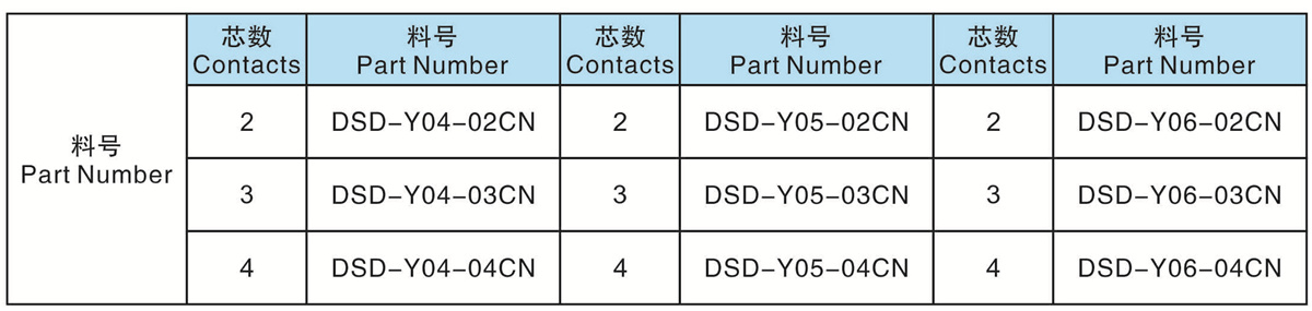 芯數(Contacts  Number):   2 - 4 芯